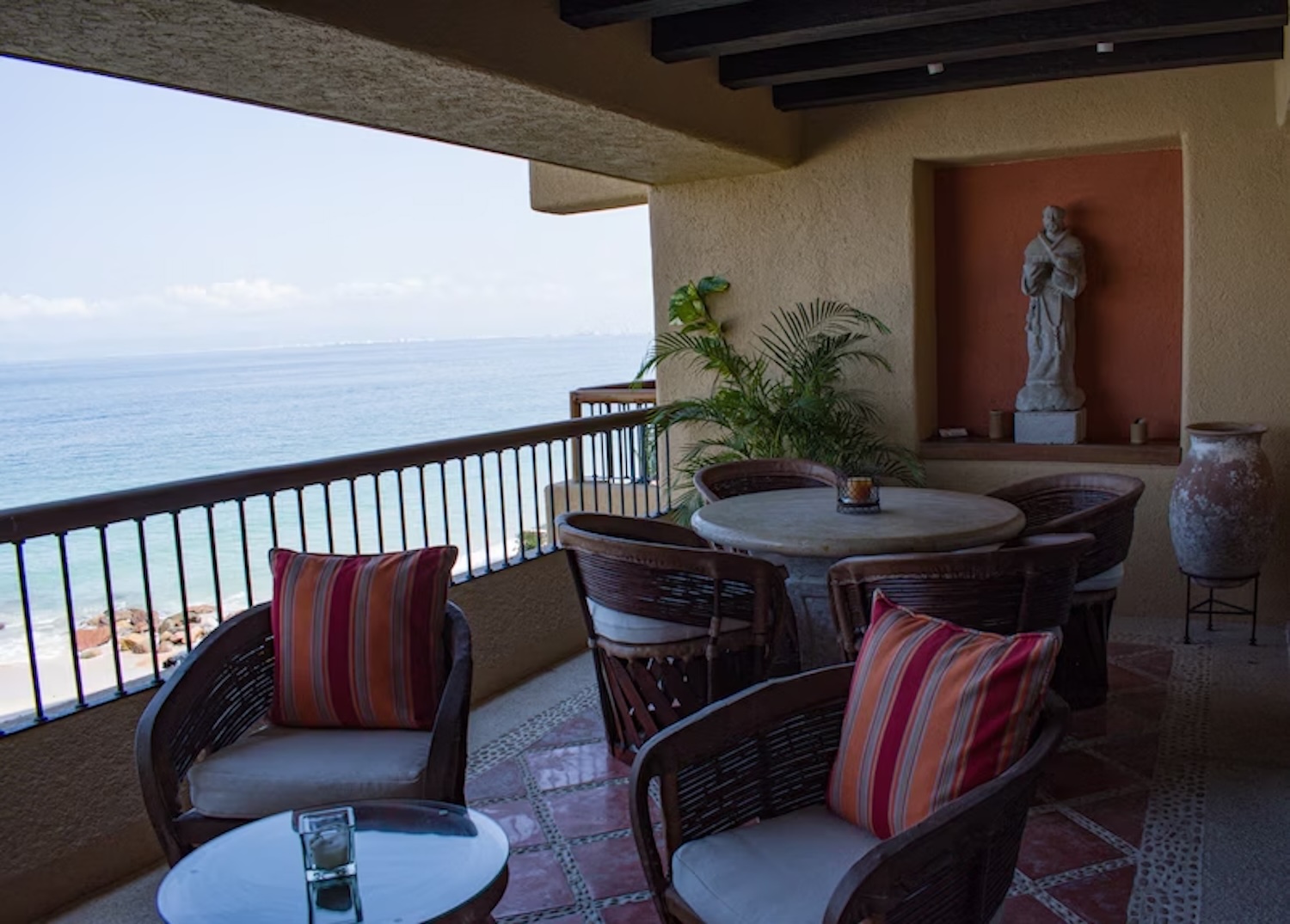 Los Palmares es uno de los desarrollos de condominios frente al mar más exclusivos de la costa sur de Puerto Vallarta, ubicado directamente sobre la playa Palmares, certificada con Bandera Azul. La residencia 302 presenta una arquitectura vallartense tradicional y atemporal, con tonos cálidos y acabados de alta calidad, como pisos de loseta Saltillo, carpinterÃa sólida de madera tropical y vigas de madera expuestas que realzan sus amplios espacios de concepto abierto.