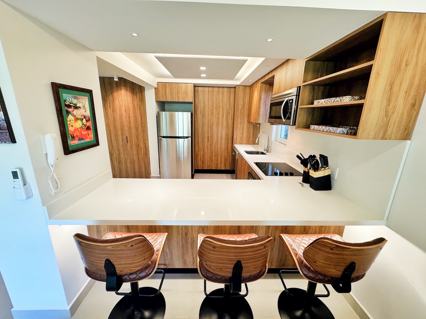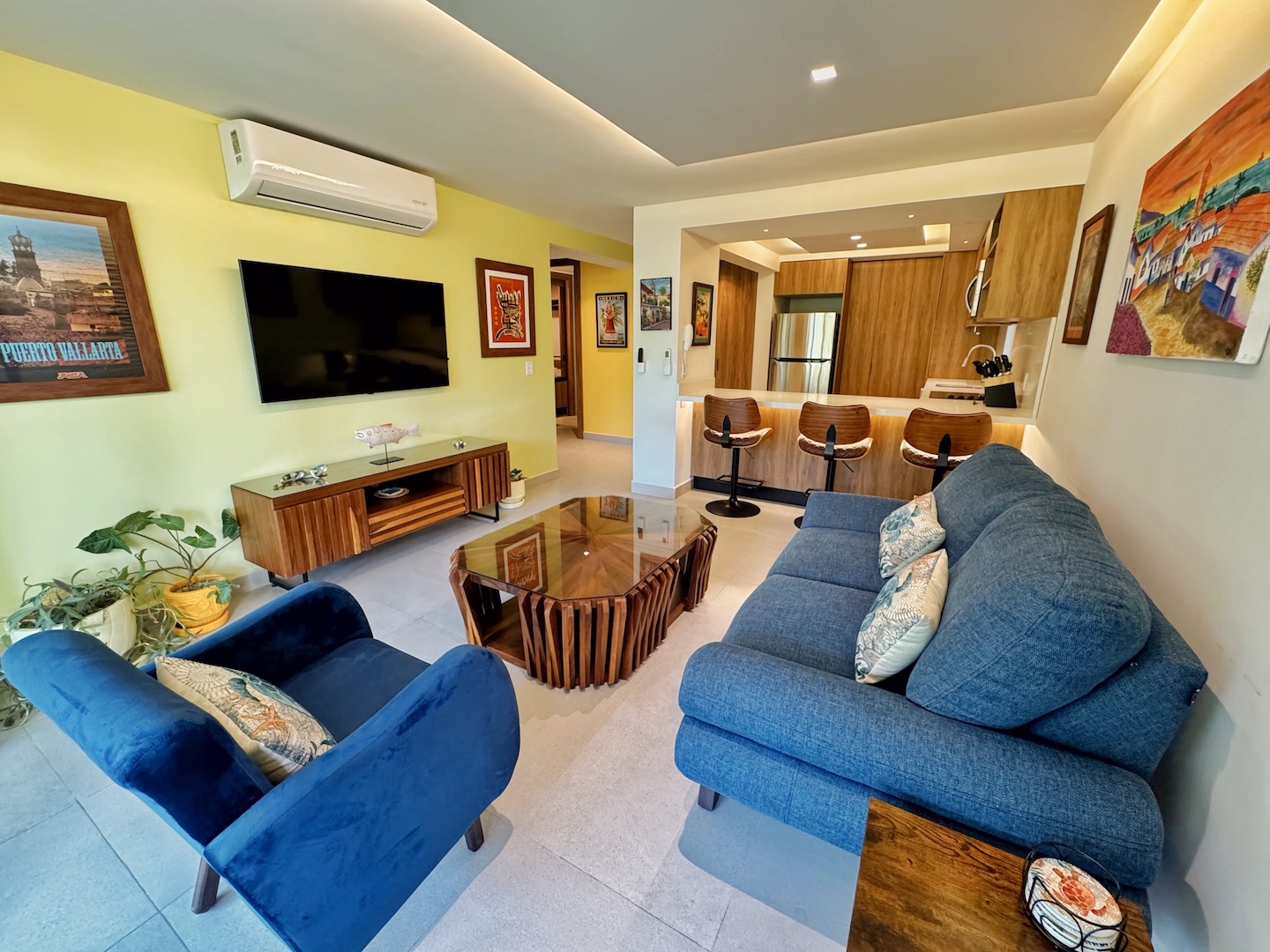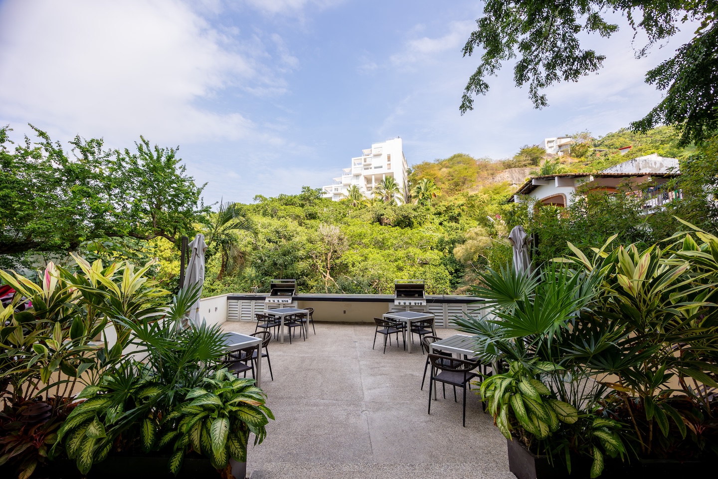 ’’Casa Bonita’’ seamlessly blends contemporary architecture with charming Mexican flair. As you walk through its main corridor, you’re greeted by beautifully illuminated open-concept living spaces adorned with vibrant, enchanting colors that harmonize perfectly with the stunning lush jungle surroundings of the Amapas hills. ’’Casa Bonita’’ stands as the largest north side unit in the building, offering breathtaking views of the tranquil lower grounds of the complex. This includes an enjoyable jacuzzi, BBQ areas, and lush green gardens. Seaview Residences also boasts a rooftop deck with a bar, sunbathing areas, and poolside spaces, providing divine ocean and town views that captivate and enchant.